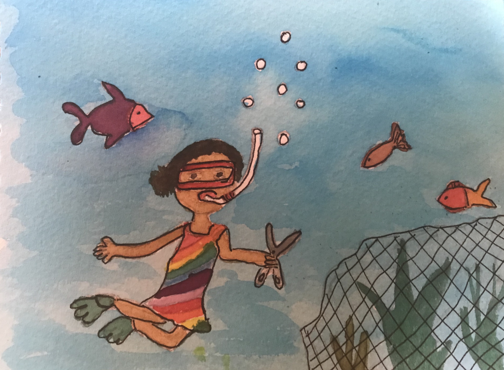 Finished another children’s book last week. A series of 8 paintings for a story of a dolphin that got trapped in a fishing net who was rescued by two little girls. The girls in the story are friends. The book will be a birthday gift.