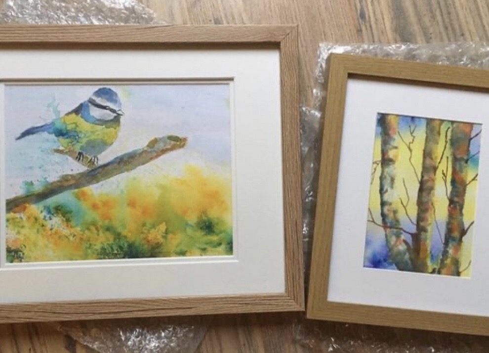 Packed up these two brusho paintings for a semi permanent exhibition at the Marston Moretaine Forest Centre as part of Dunstable and District Art Club.