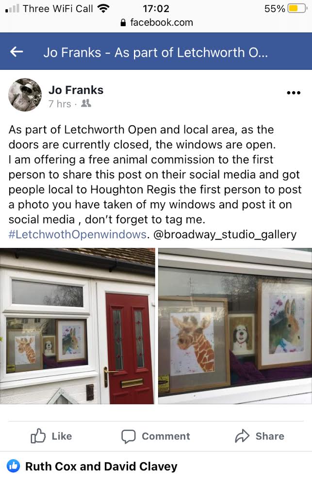 The doors may be closed but the windows are open, Letchworth Open. Artists taking part are encouraged to place art in their windows, mine had only been displayed a day when a neighbour asked if I was able to create a squirrel commission!