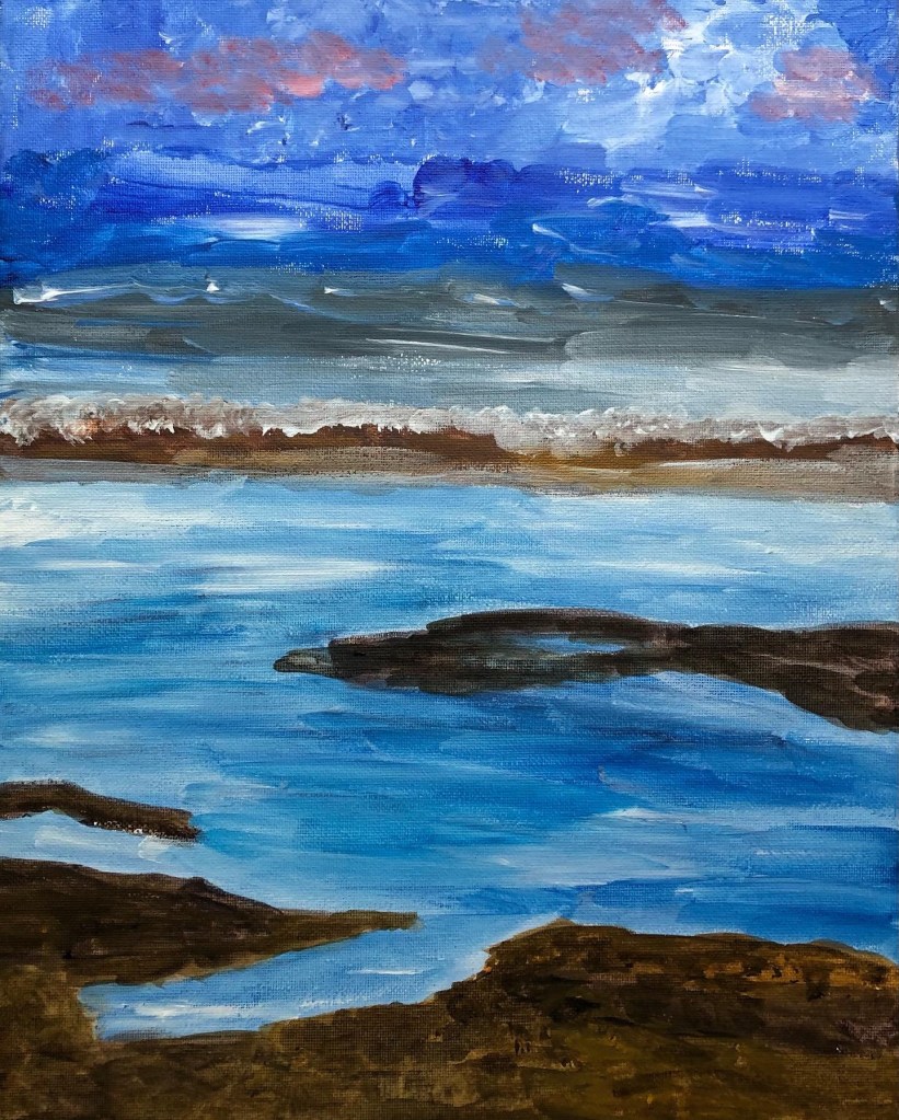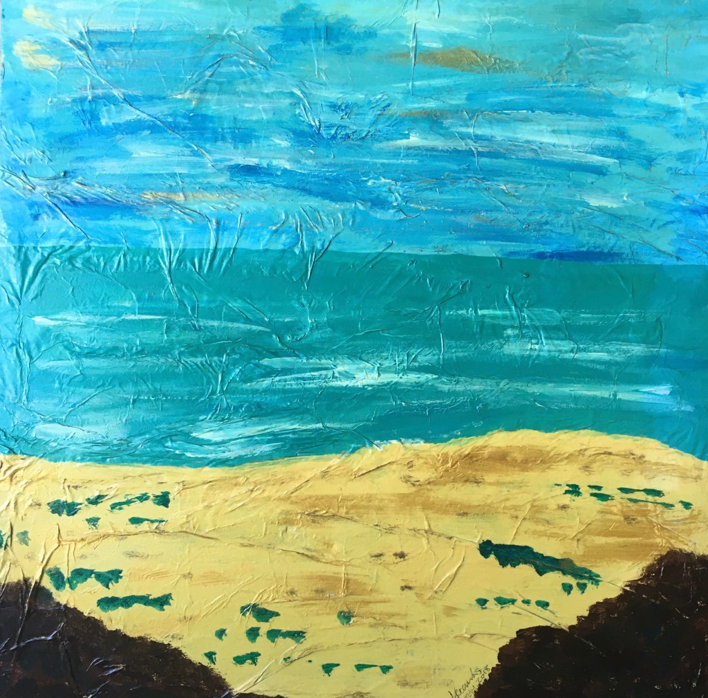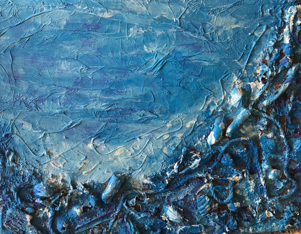 I grew up by the sea in Devon and continue to be inspired by its changing moods. I used bold colours and textures in these seascapes.