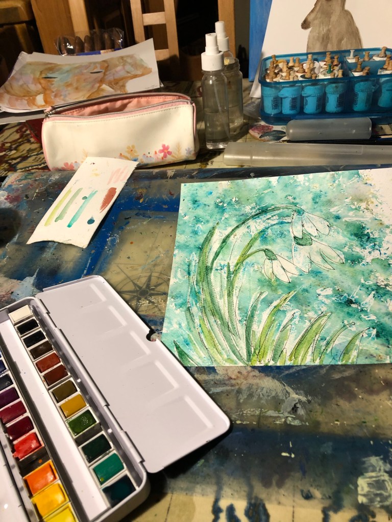 I am taking part in my first Open Studios, why not drop in any Monday, Tuesday or Saturday between 12 and 4 pm to see me in my pop up studio, including brusho demonstrations, art for sale and free refreshments,